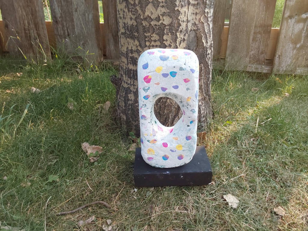 This piece was inspired by a girl artist named Barbara helpworth. Her pieces are famous for having holes in them. We carved it out of a block of foam.